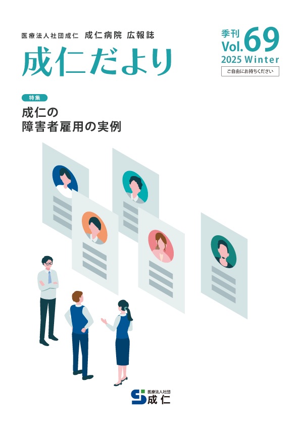 『成仁だより』は成仁病院の広報誌として年3回発行しています。当院の取り組みや医療情報、スタッフの紹介など様々な情報を地域のみなさまにお伝えします。